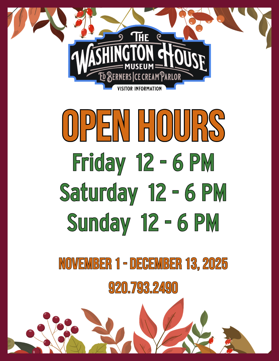 - Saturday, November 29 – 10am-4pm: Holiday Craft Faire by The Washington House Volunteers